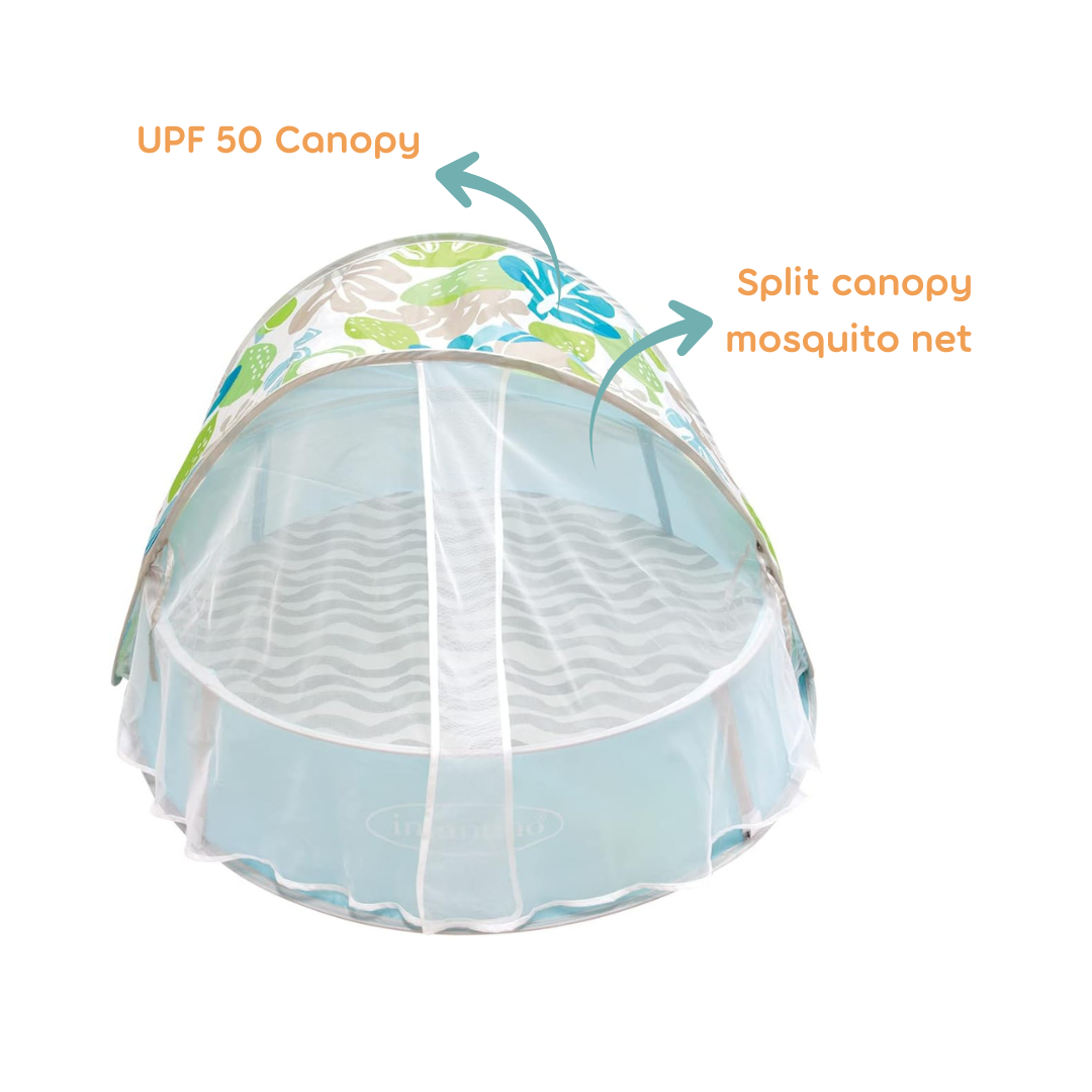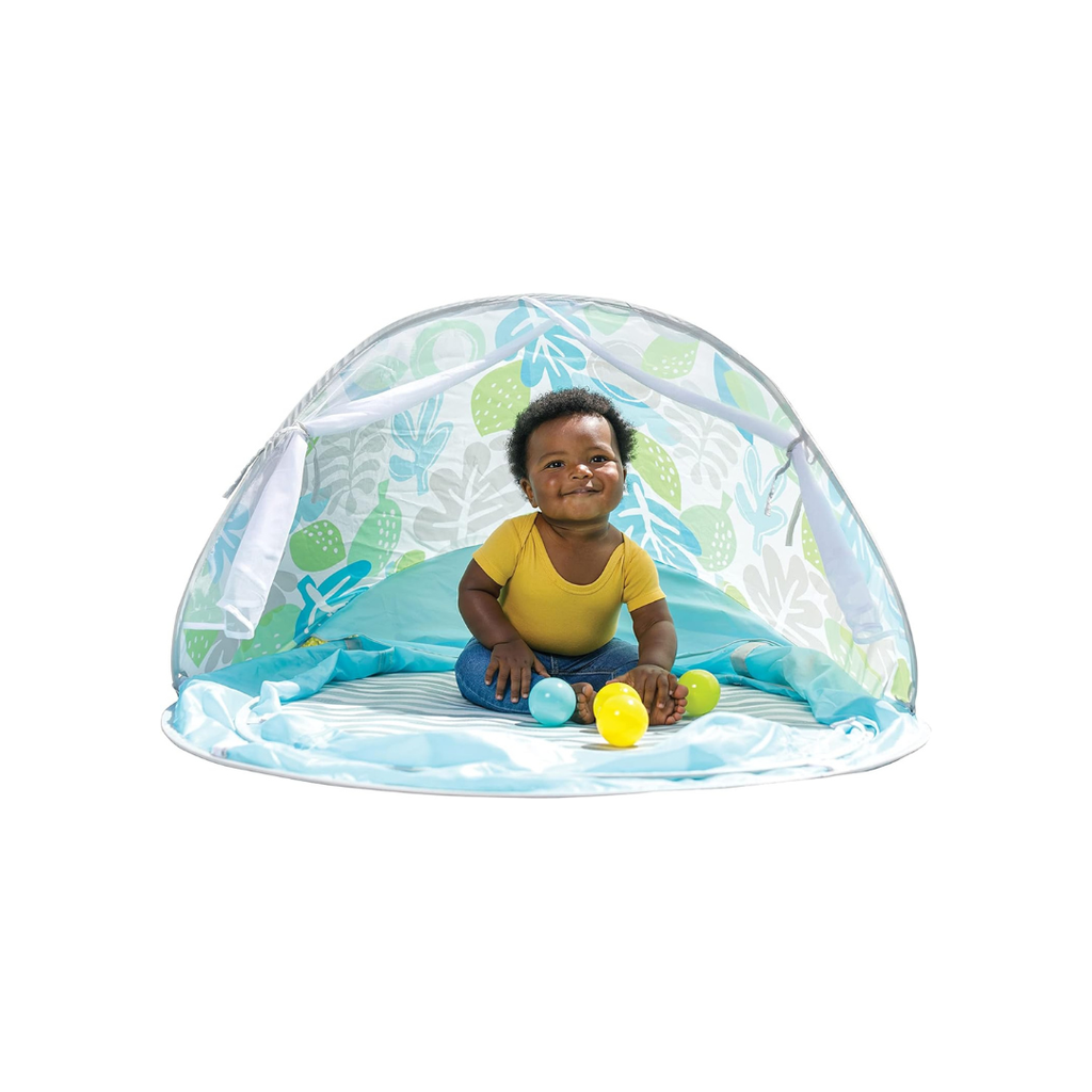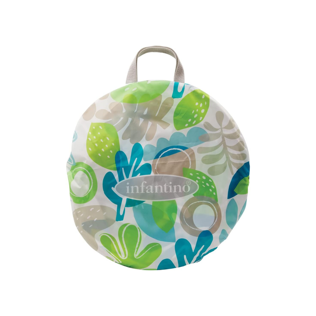 The 3-in-1 Pop-up Ball Pit by Infantino is multifunctional and ideal for playtime outdoors and indoors! Our easy to pop-up system has 4 integrated support legs that offer stability when setup. Both, walls and canopy cover offer UV protection of UPF50, making it a great space for little ones with protection from the sun. When the weather?s gloomy outside, bring the pop-up ball pit indoors to create a cozy play space for your baby! Toss the 6 colorful balls in for ball pit fun. Equipped with an adjustable fine mosquito net to keep insects out and your baby protected from bug bites. Our easy to use pop-up system makes setting up, folding and traveling with the 3-in-1 Pop-up Ball Pit a breeze. When the fun is done simply fold this multifunctional play destination into the travel bag with handle for compact storing.