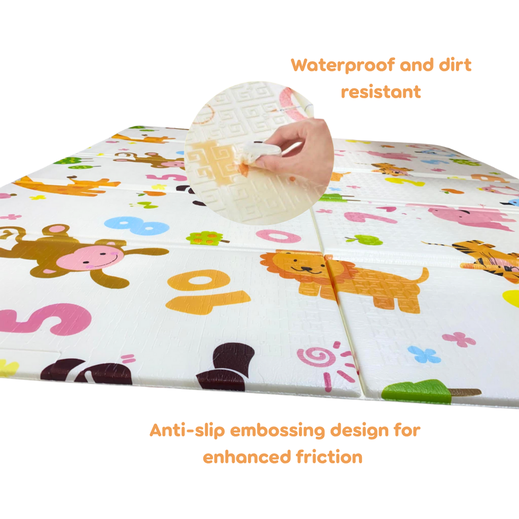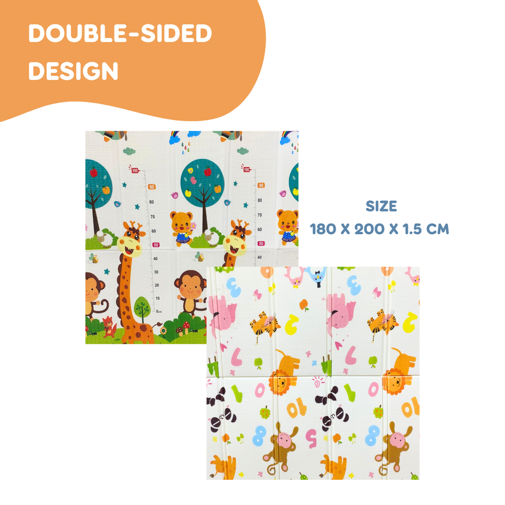 Double Sided Wipe & Clean Eco Friendly Foam Mat will be your kids favourite spot at home. It is 1.5cm thick so very soft for toddlers to crawl on. Easy to clean and easy to fold and pack in a non-woven bag that it comes along with, makes it extremely easy to use both indoor and outdoors. The unique color combination of this play mat immediately brightens up the room. Thanks to the soft, high-quality materials, it is wonderful to walk on it with bare feet. In addition, the mat is large enough to play on.