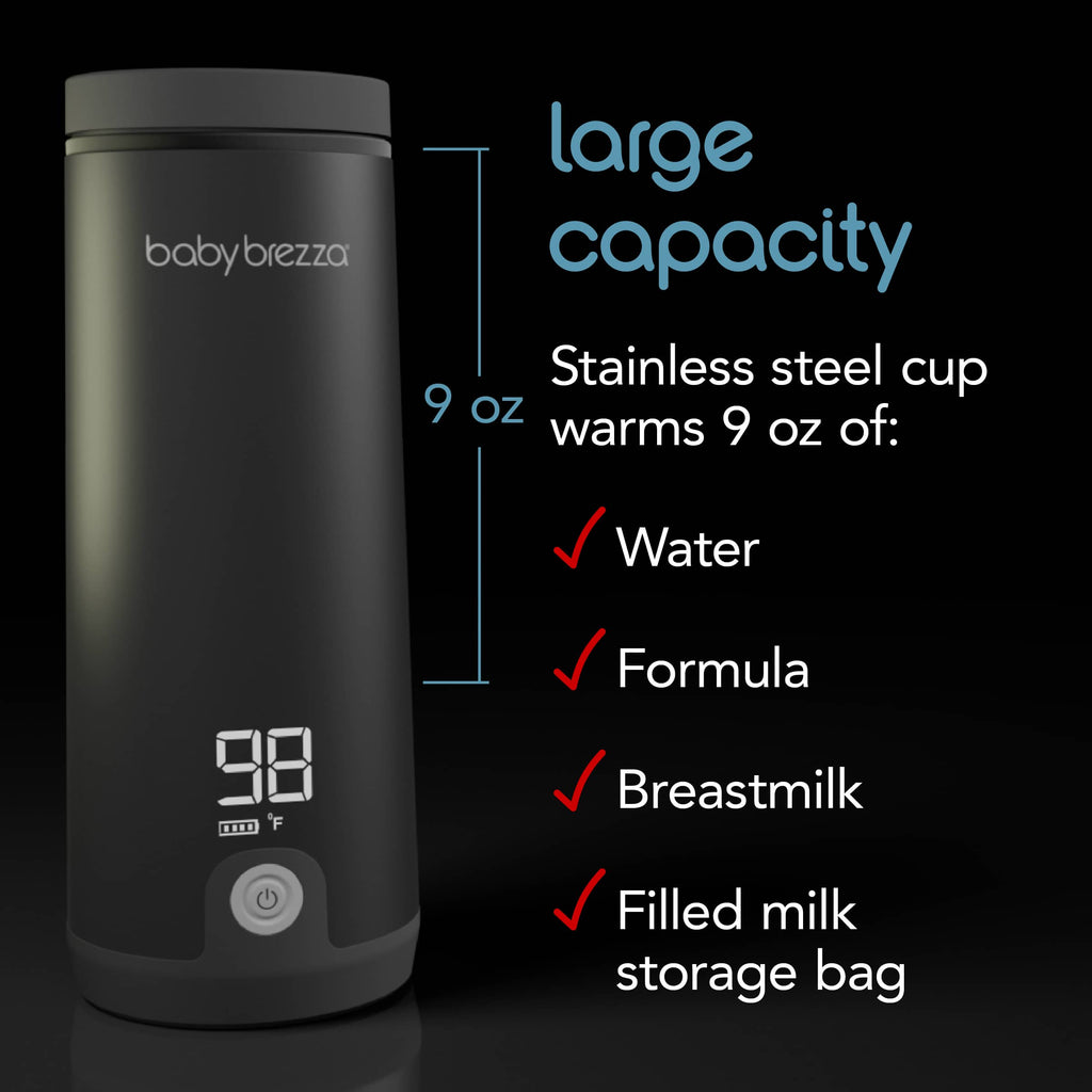 The Baby Brezza SuperFast Portable Bottle Warmer is the fastest, most advanced way to warm breastmilk, formula, water or a filled milk storage bag on the go. Now available in bold Black color. It's clinically proven to warm up to 67% faster than other portable warmers, including 8 oz in 3 minutes (from room temp to 98 degree F).