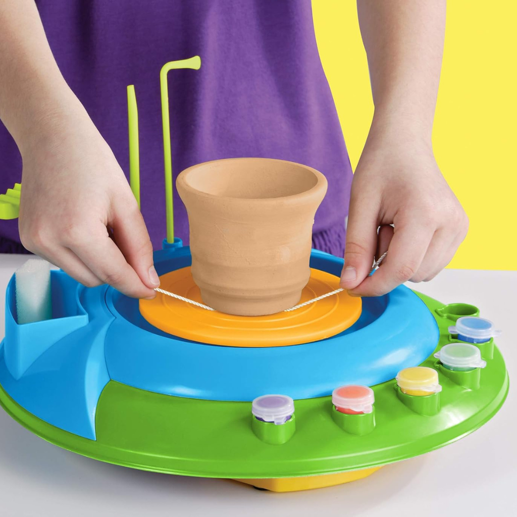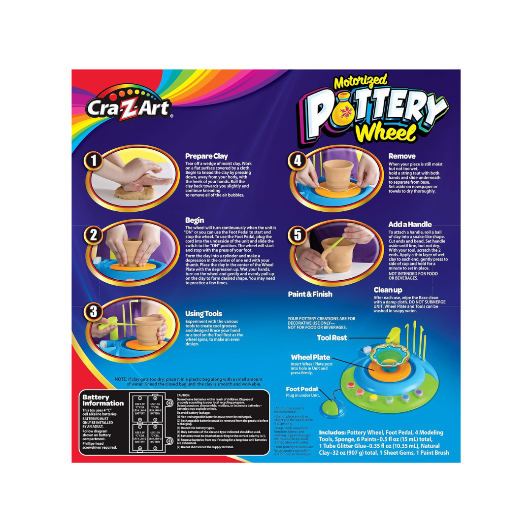 Cra-Z-Art Real Motorized Pottery Wheel Activity Set for Kids. Real durable plastic Motorized Pottery Wheel for creating clay pots, jars, bowls, and more! Clay is non-toxic and safe for kids to use.