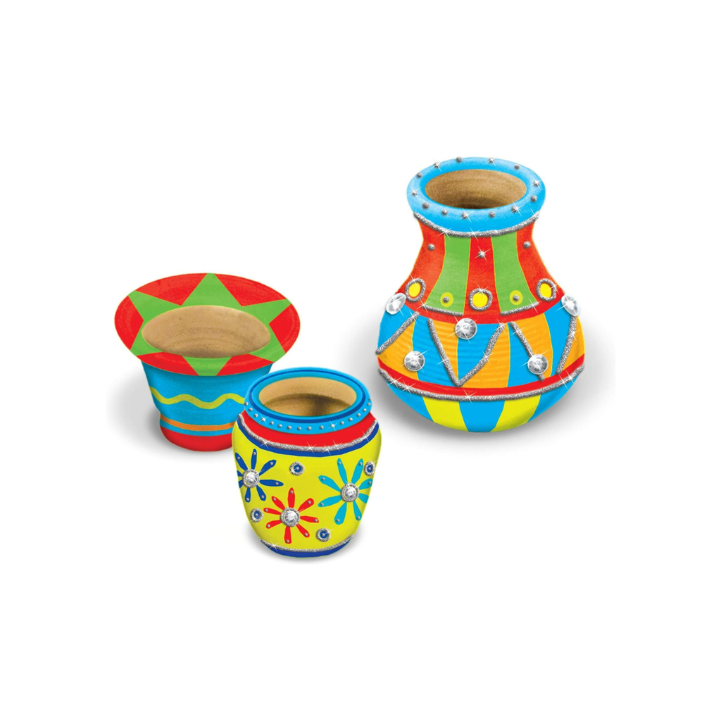 Pottery wheel ,foot pedal ,4 modeling tools ,sponge,6 paints,1 tube glittter glue ,natureal clay ,1 sheet gem, 1 paint brush