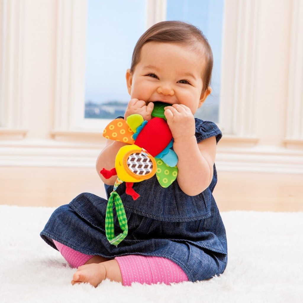 • Easily links to car seats, strollers and activity gyms.
