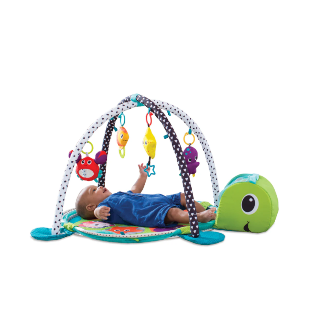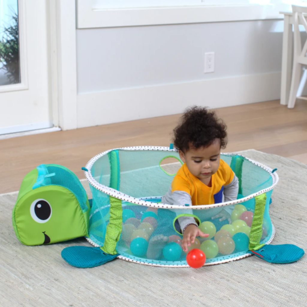 Have a ball with this action-packed activity gym! This one-of-a-kind gym converts into a fun, sensory-stimulating ball pit that's perfect for busy toddlers. Includes 40 colorful balls with convenient storage inside the turtle's head. And, four adorable sea pals delight little ones with a peek-a-boo mirror, grasping ring, textured teether, and rattle. This versatile playtime favorite will grow with your family to offer years of priceless entertainment.