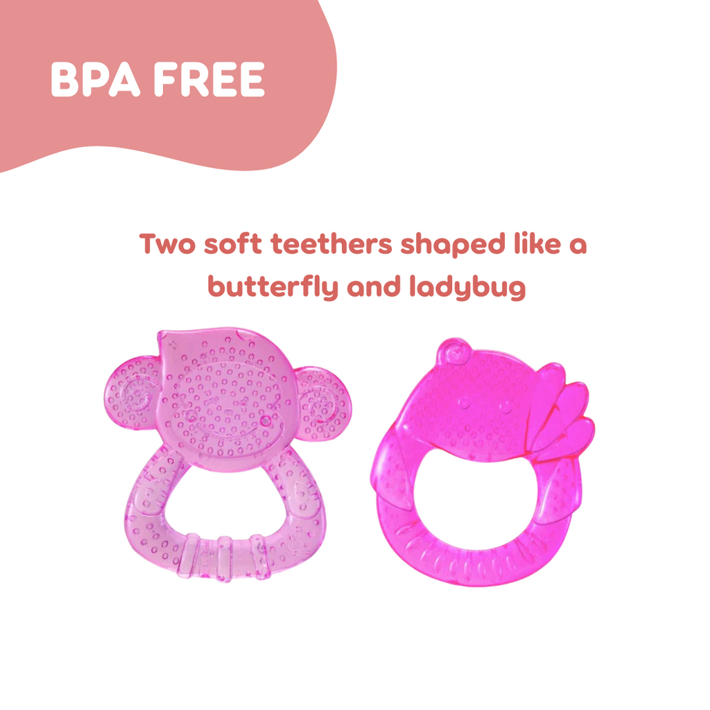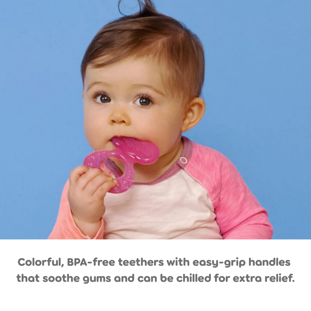 Infantino brings you cute, colorful, attractive, and appealing teethers for your baby. these teethers have a unique surface texture that effectively helps your baby to overcome teething discomforts. babies like to put things in their mouths which is a natural reflex and an important part of their development. its bright color prompts your baby to nibble at it, which acts as a great relief for sore gums. besides, its baby-friendly light in weight design lets your little one hold it all by themselves and learn to eventually control the force of the bite.