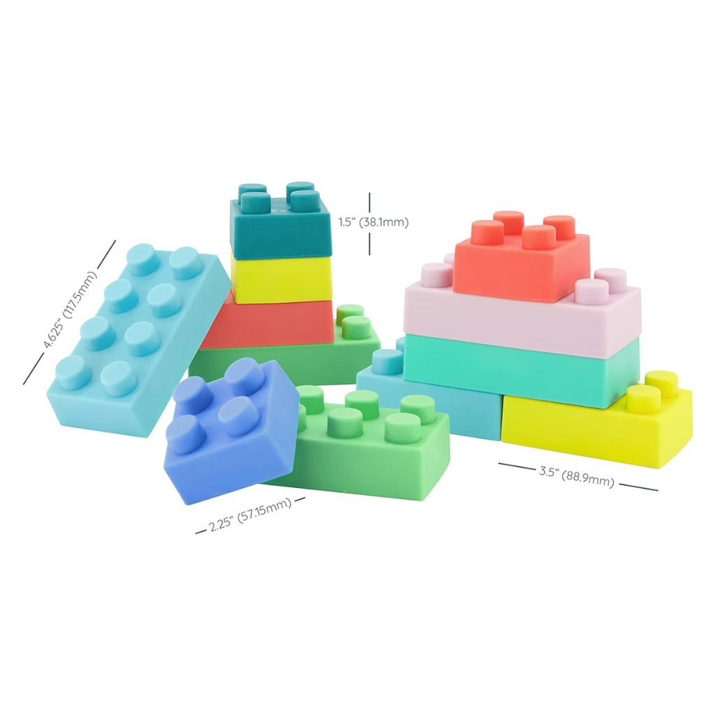 Your little one will love this 12-piece set squeezable, stackable, & (super!) soft building blocks. These easy-to-grip, must-explore, multi-textured, sensory-packed building blocks offer endless engagement from playtime to snack time. Your baby will love stacking these colorful blocks on top of one another, while engaging in fine and gross motor skills. They're also great for learning colors and counting. Use the convenient storage bag during cleanup time or on the go play..