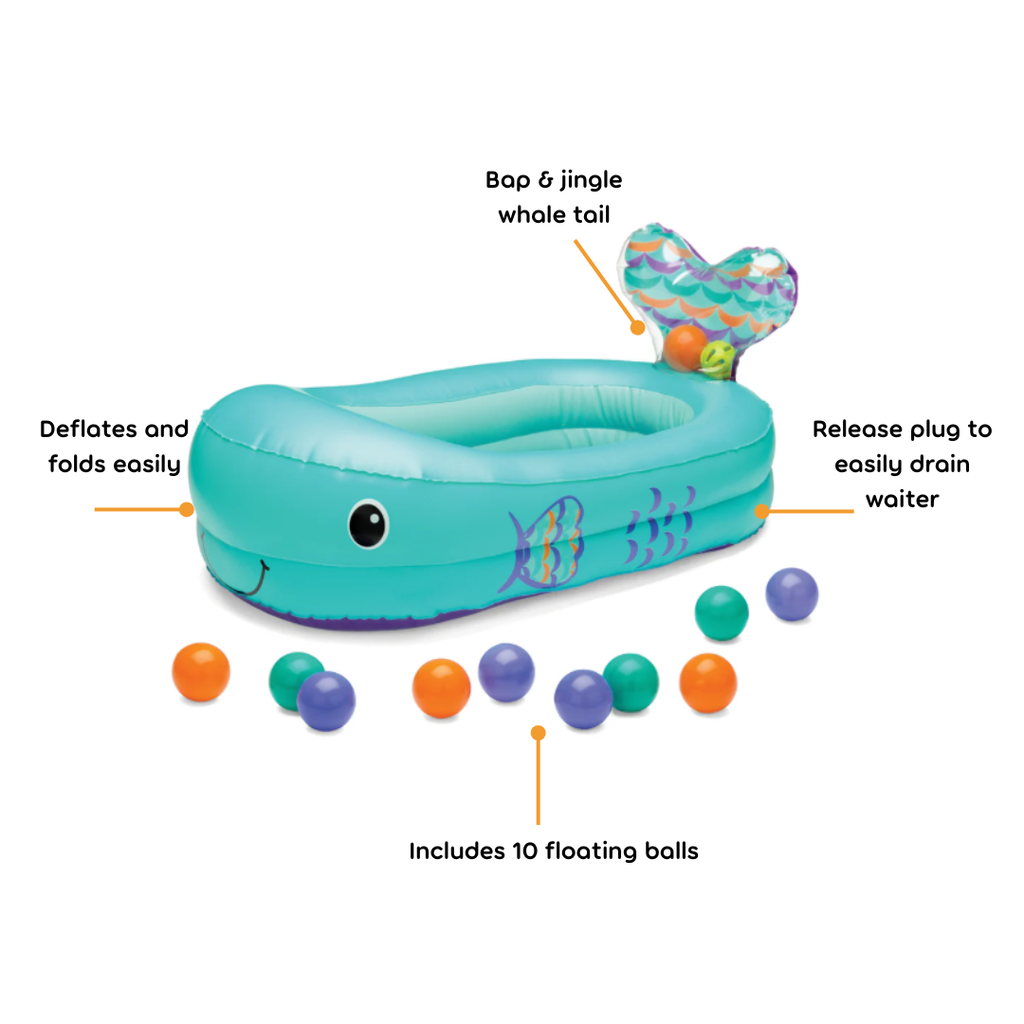 Baby will love spending hours playing with the Infantino Inflatable Bath Tub. Different shapes, colors and textures that little ones take a lot of pleasure to discover. Baby will explore new world as they play with the toy. It encourages important sensory milestones including gross motor skill development and visual tracking. Perfect for sensory exploration and tactile development!