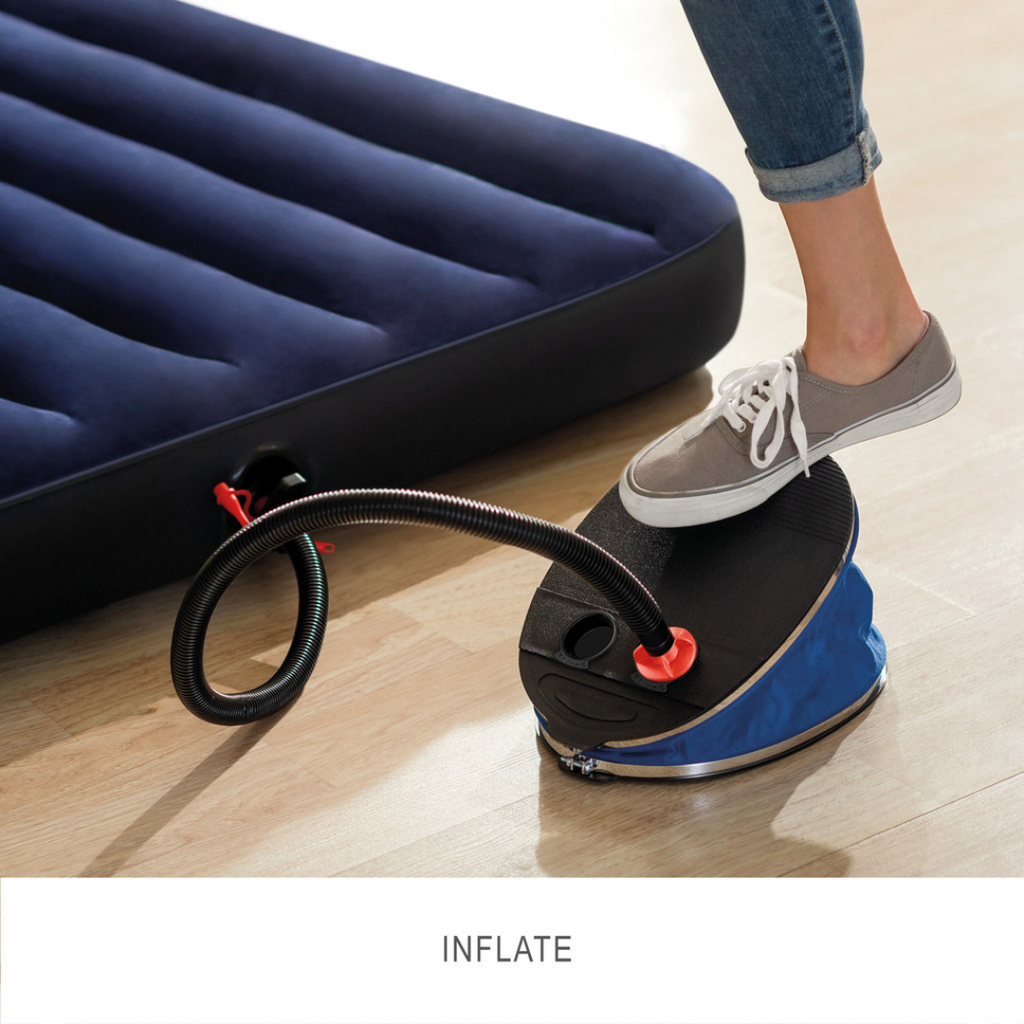 This 12" (30cm) Giant Bellow Foot Pump can get the job done even without electricity. This pump inflates and deflates and includes an accordion hose with 3 nozzles to fit small, medium and large air valves.