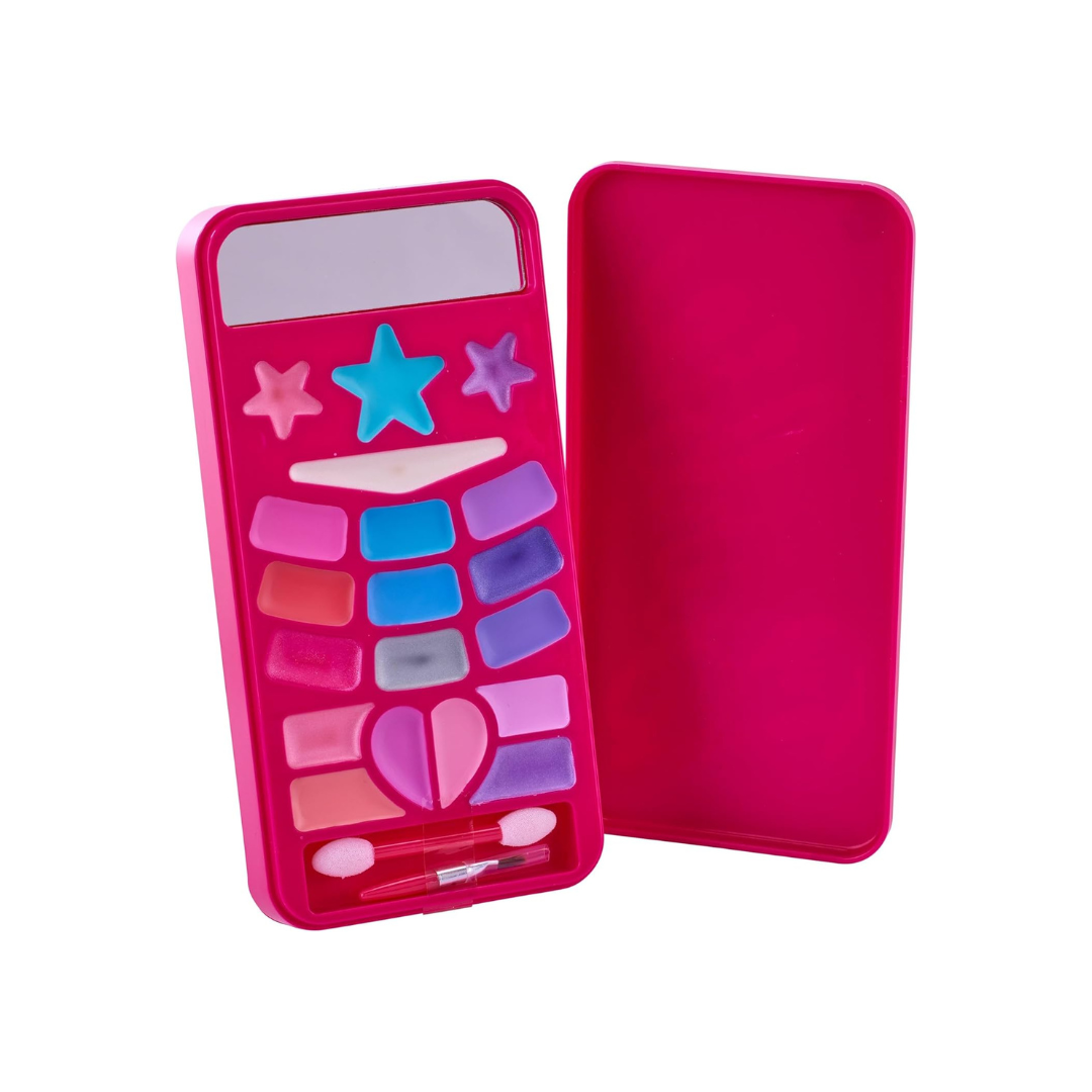 Encased in a trendy, mobile phone-shaped Barbie case with the iconic hot pink finish and Barbie branding, this compact is perfect for glam on the go. Bring it to sleepovers, parties, or playdates for hours of makeover fun and creative play.