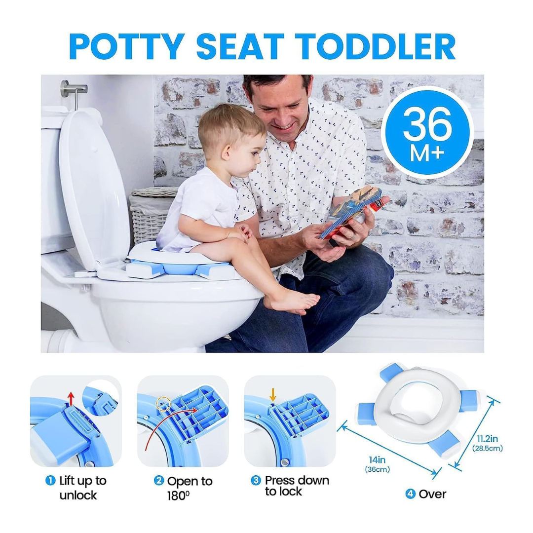 The soft material of the baby potty trainer provides comfortable seating which instils a sense of confidence and familiarity during the transition from potty to toilet training.