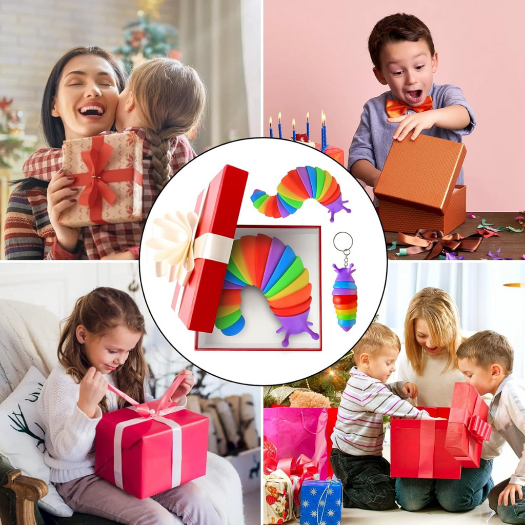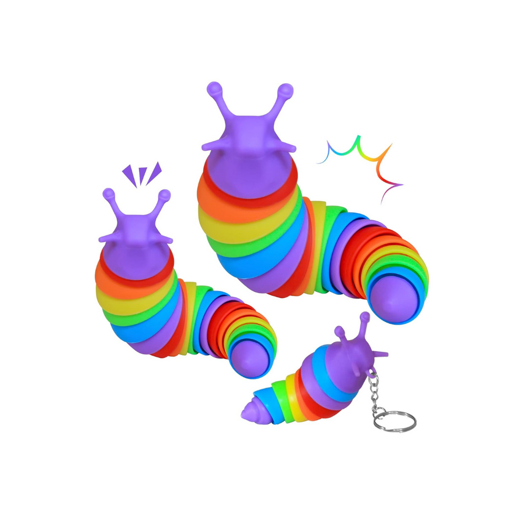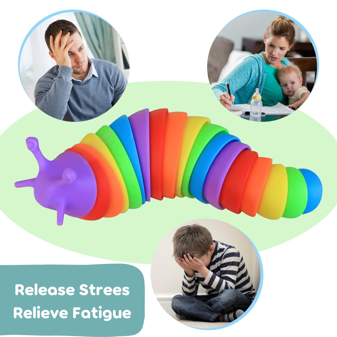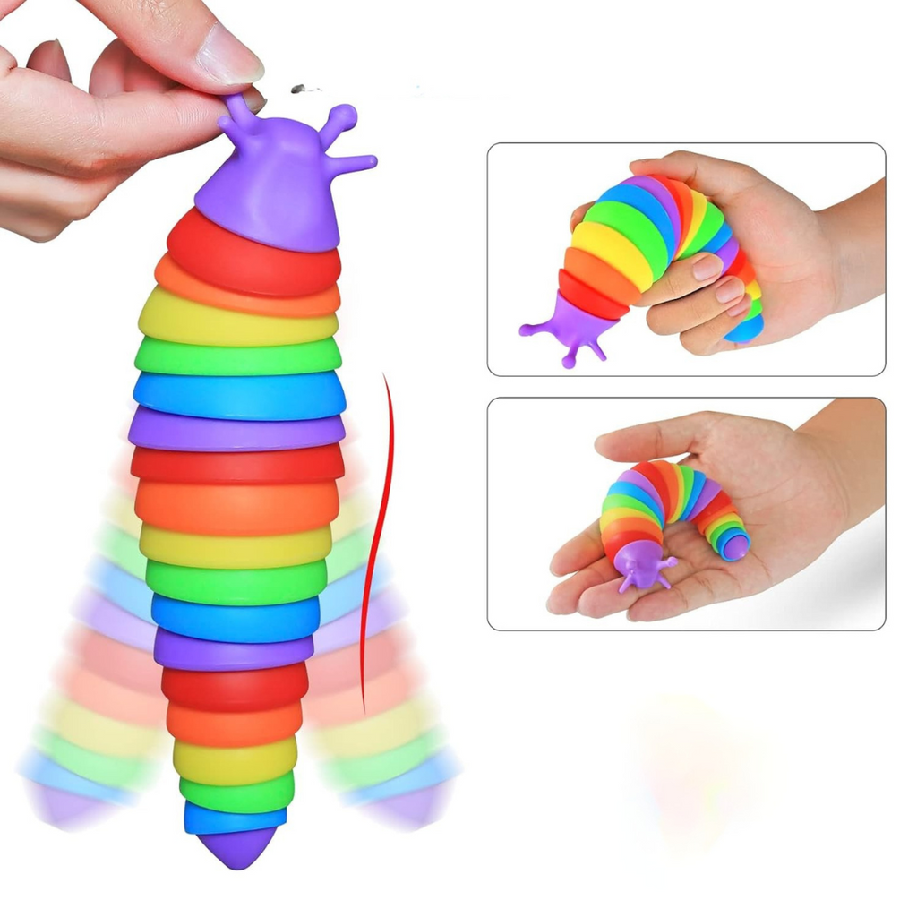 โข ๐๐๐๐จ๐ฆ๐ฉ๐ซ๐๐ฌ๐ฌ๐ข๐จ๐ง ๐๐ฑ๐๐ซ๐๐ข๐ฌ๐: A very playable, very decompression toy, so you no longer worry. You can twist the Slug toys body at will, while swinging the rainbow slug on your hand, it will make a crisp sound, Touch and hearing give anxiety a very comfortable decompression feeling.