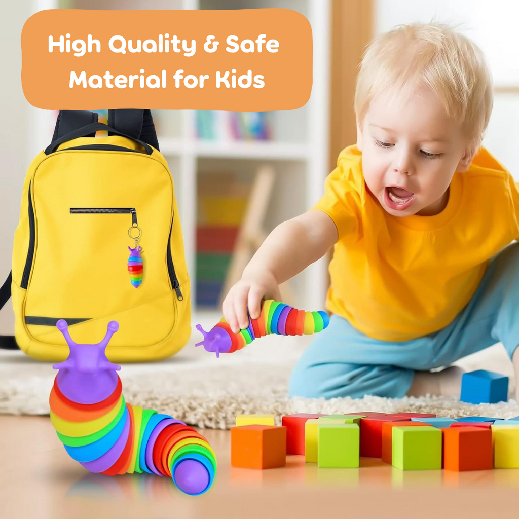 โข ๐๐ข๐ ๐ก ๐๐ฎ๐๐ฅ๐ข๐ญ๐ฒ: This sensory slug toy is a completely safe, non-toxic, odorless plastic toy that can be used in your daycare or preschool to help children develop their fine motor skills.