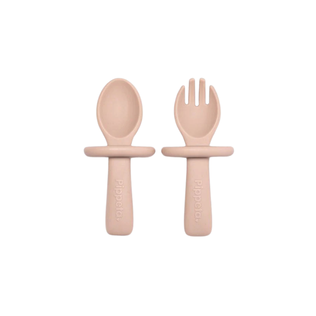 Make mealtimes stylish with our Award Winning premium silicone spoon and fork set for your Little Pippeta.