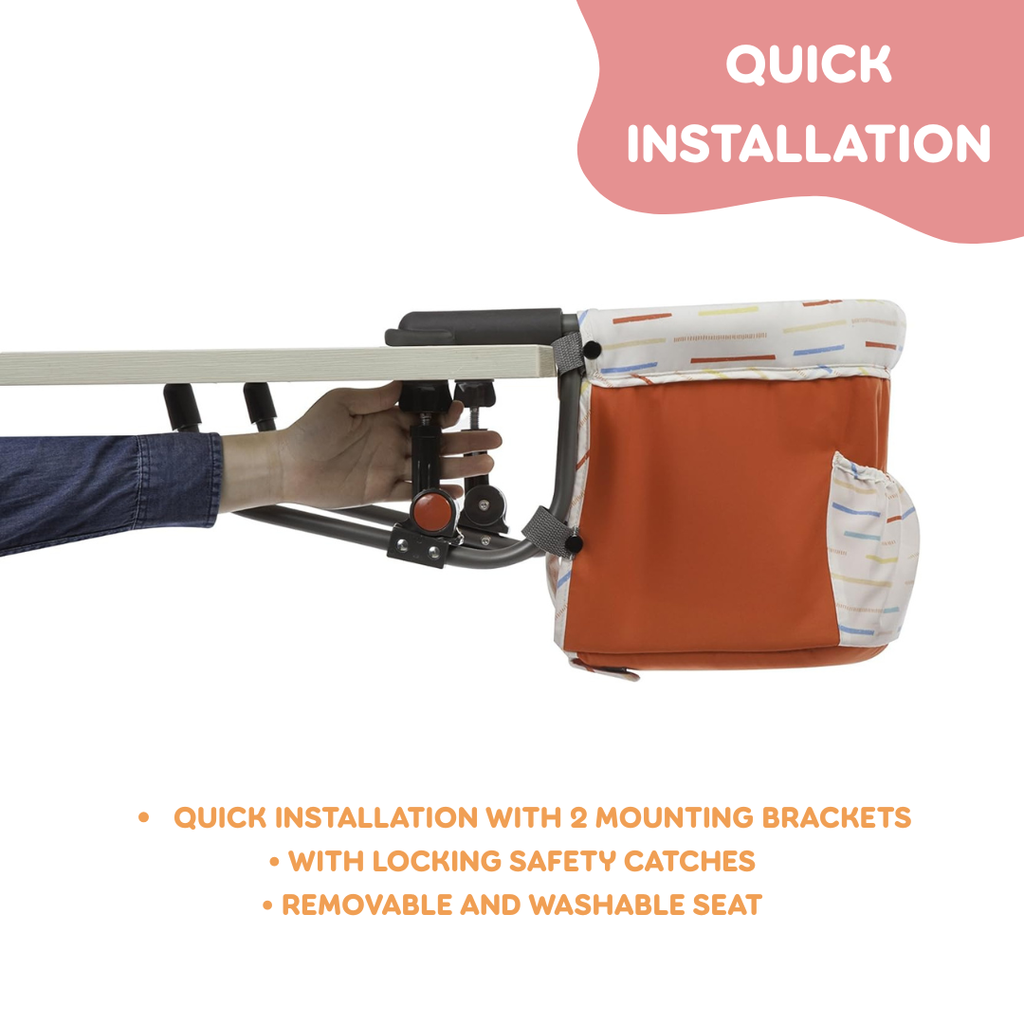 The Smart Lunch hanging seat from Safety 1st is ideal for when you are traveling and still want a high chair. You can clamp this practical solution to the table top and eat. The Safety 1st Smart Lunch is suitable for children from six months up to a maximum weight of 15 kg. The compact and safe table seat has a comfortable fit, allowing your child to enjoy a meal. The soft and reinforced seat of the chair has a removable cover that you can wash by hand. The two safety catches ensure optimum stability and maximum safety. Due to the material, the Safety 1st takes up little space on the road and you can easily carry it with you.