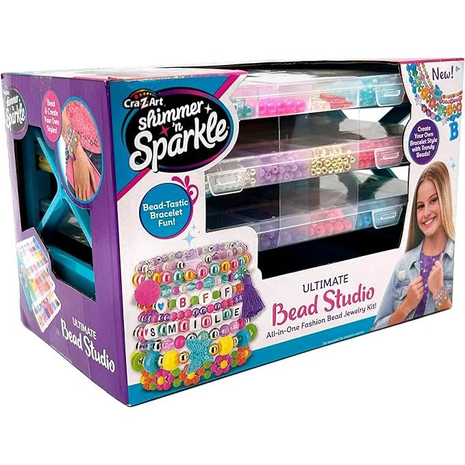 The totally on trend kit that allows you to create your very own stylish tila beaded bracelets, rings and more. The special threader makes beading as easy as 1-2-3. Choose your beads, thread the beader, slide & create. Simple to design & make and there are so many designs to create. There are bracelets, rings and earrings to make and wear or make and share. The Fashion Bead Studio also opens up and can be used as a storage case for all of your beads, the perfect way to keep everything tidy.