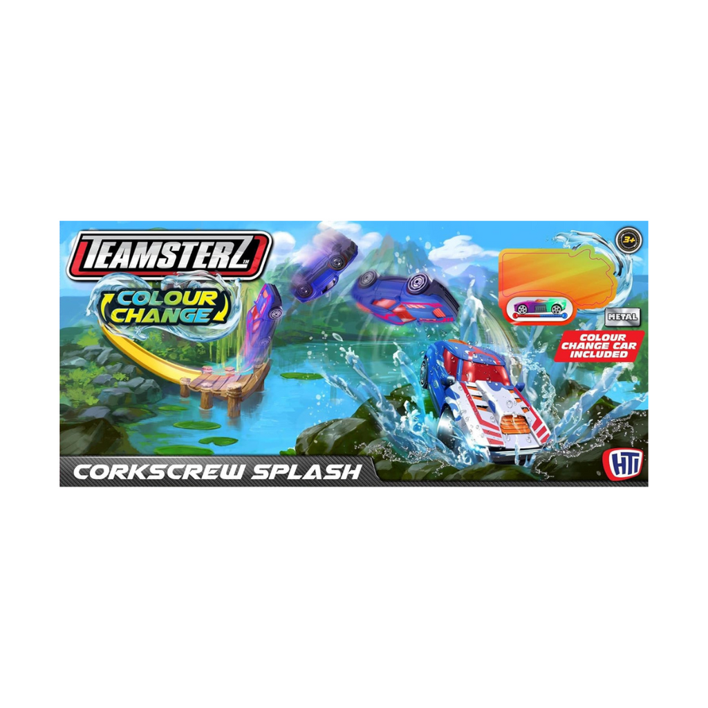 Your little racer will have endless fun with the Teamsterz Colour Change Spiral Splash Track set. Launch cars speeding along the single lane racetrack with the pull-back elastic launcher. Fly into a rocky pool of warm water and watch your car change colour. Then dunk into your other rocky pool of ice-cold water to turn it back to its original colour. Includes 1 x 3 die cast colour change car and 2 rocky pools. This great value track set is easy to construct and encourages imaginative vehicle play. Compatible with other track sets and 3″” die-cast cars for broader play.