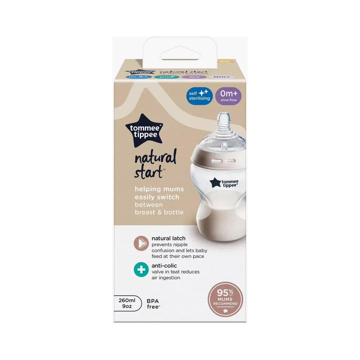 Give your child the most professional and suitable products that protect them from annoying colic with Tommee Tippee's Advanced Anti-Colic Feeding Bottle. A feeding bottle with a more advanced design, featuring a three-part nipple that prevents colic and curved edges that are easy for the baby to hold, in addition to a plastic cover to protect the nipple from dirt.