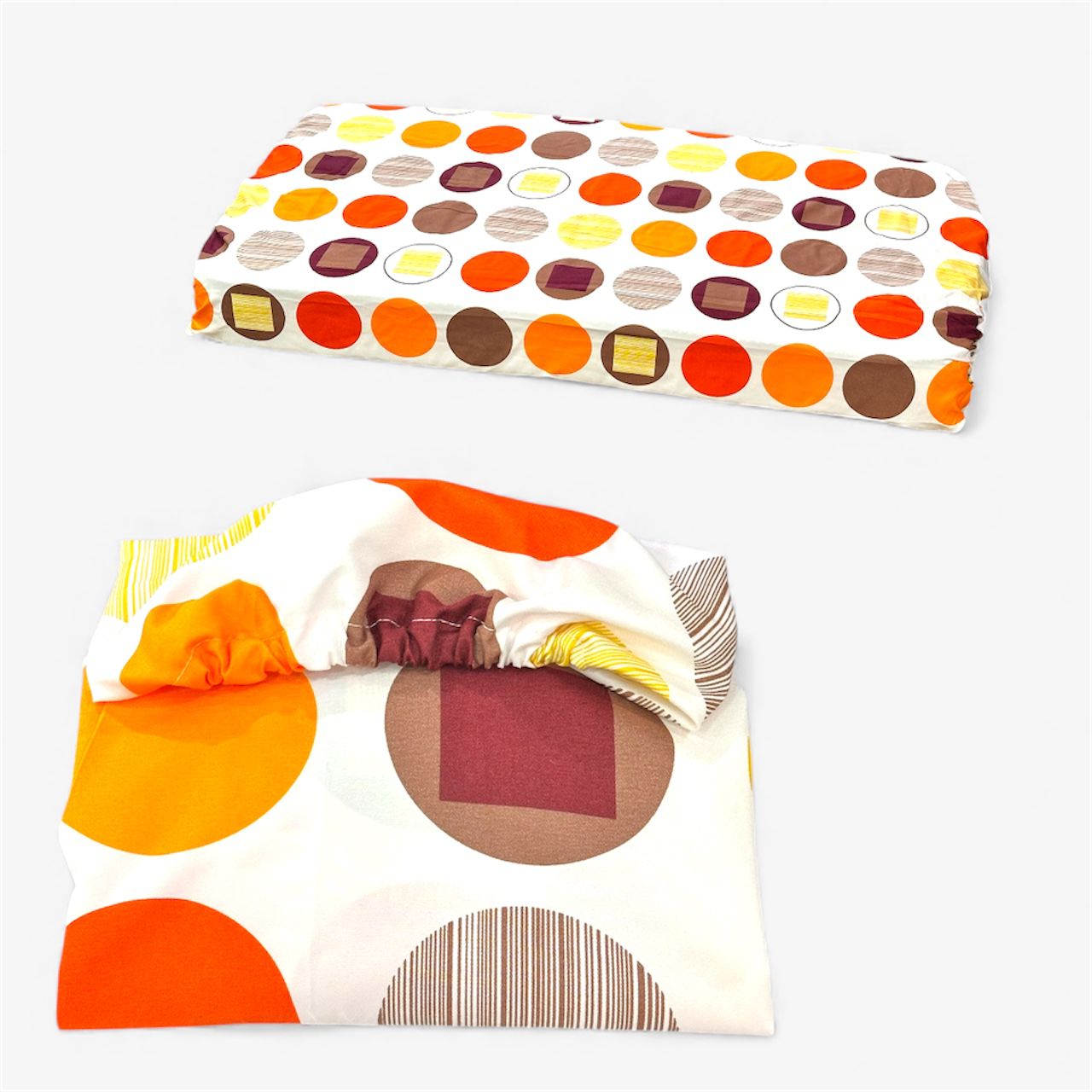 Add a splash of colour to your nursery with this playful fitted sheet featuring bright orange, yellow, brown, and burgundy polka dots on a crisp white background. Designed to fit a 60x120 cm cot, it’s made from 100% breathable cotton for maximum comfort. The elastic edges keep the sheet snug and secure, ensuring your baby sleeps peacefully.