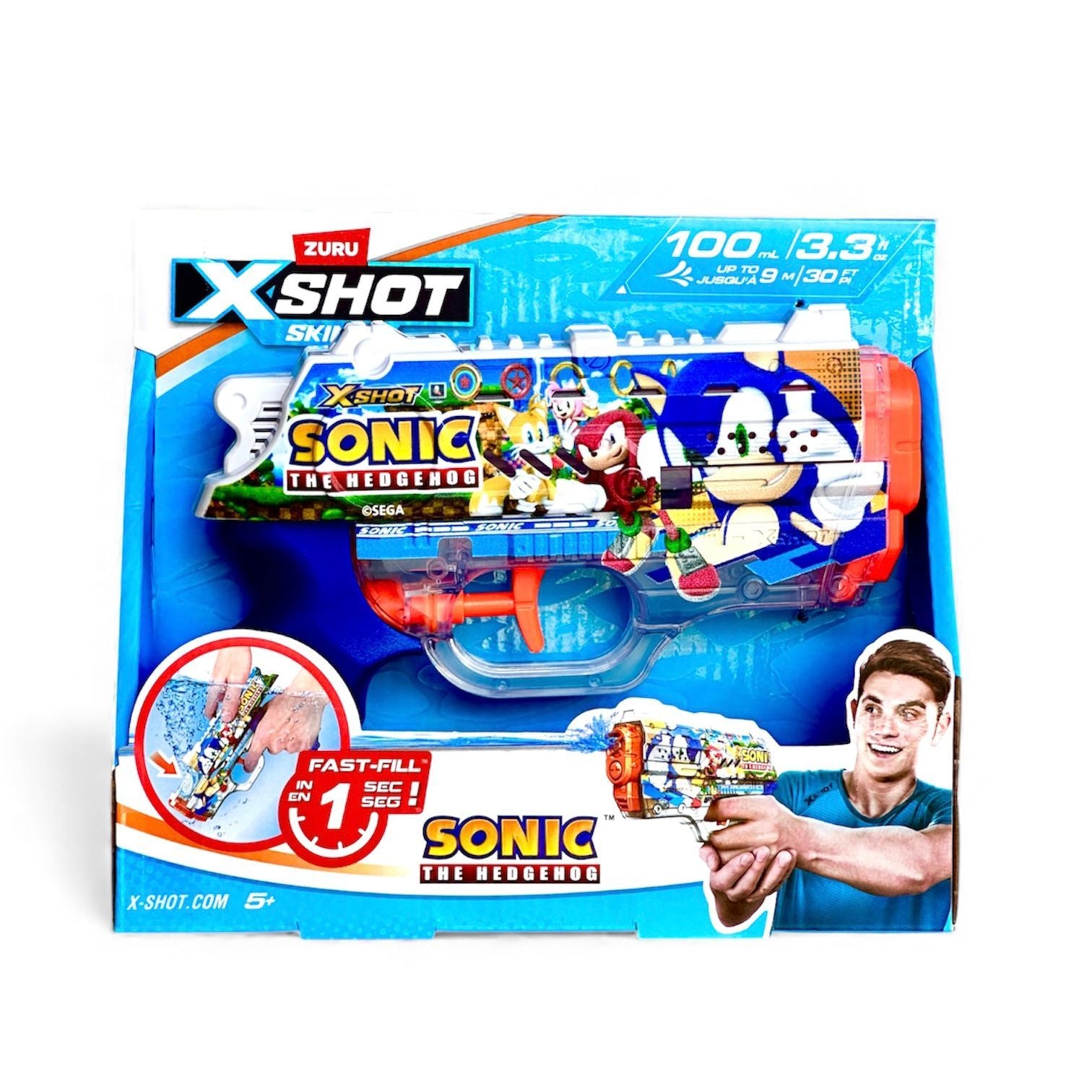 Package Includes: 1 x XSHOT Fast-Fill Skins Nano Sonic The Hedgehog Water Blaster.